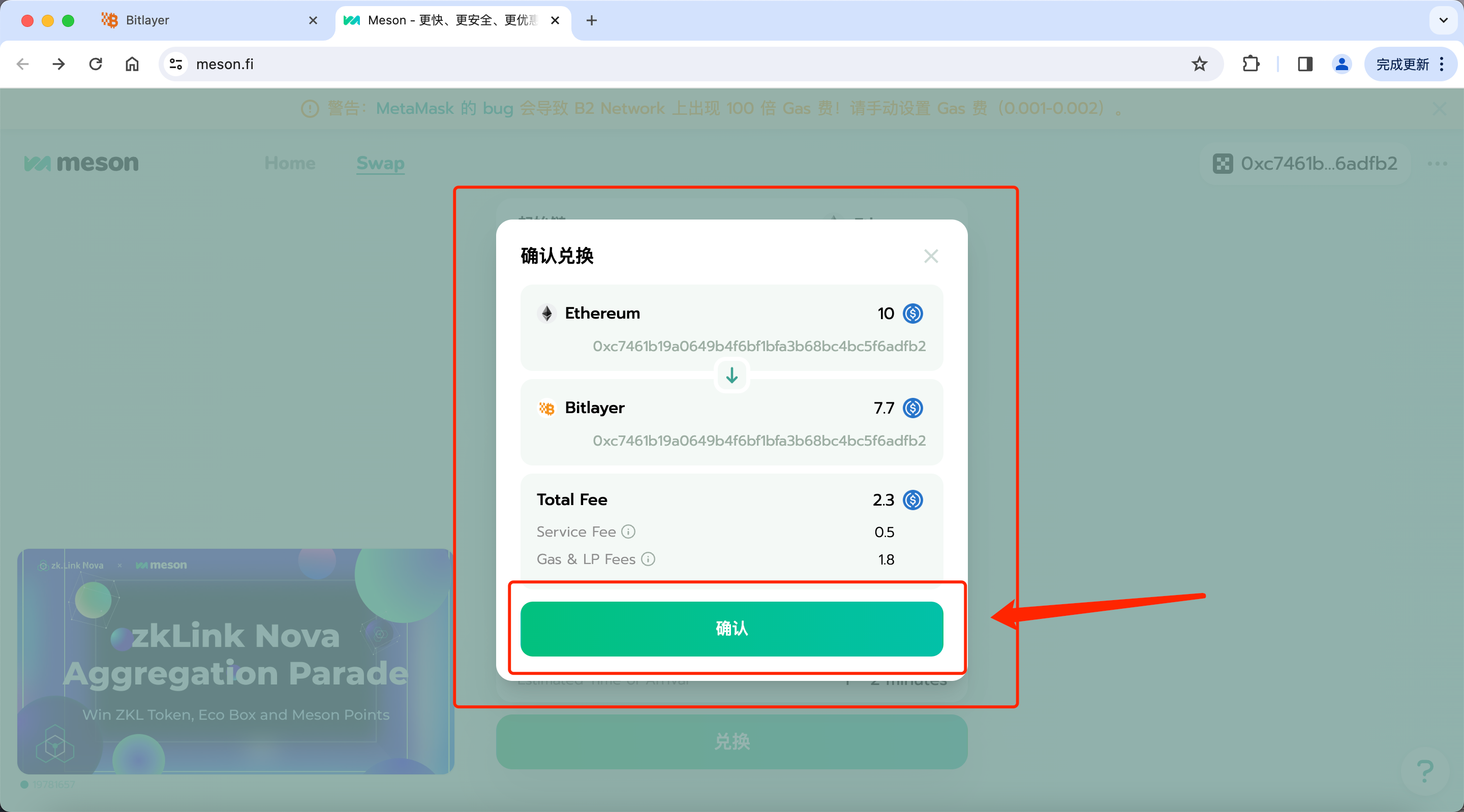 如何使用第三方桥将USDT、USDC和ETH跨入Bitlayer(Meson版)(ETH链)