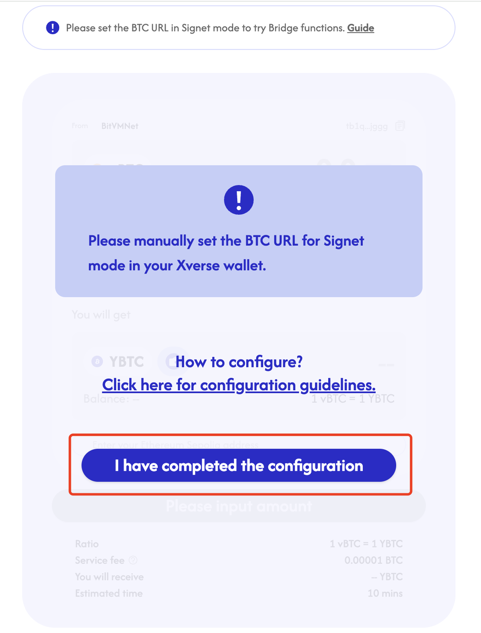在完成Signet BTC URL配置后,请打开BitVM Bridge官网的Bridge页面进行确认。