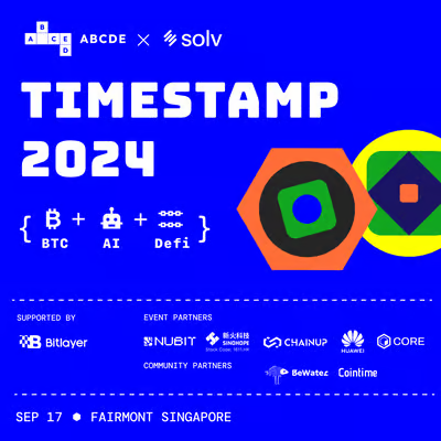 TIMESTAMP 2024 is co-hosted by ABCDE and Solv. The summit will focus on more than ten key topics, including Layer2 solutions, the Bitcoin ecosystem, New Infra, AI+Crypto, and more. The Bitlayer team will attend the summit and set up a booth. Bitlayer co-founders Charlie Hu and Kevin He will attend the conference to deliver keynote speeches and participate in panel discussions.