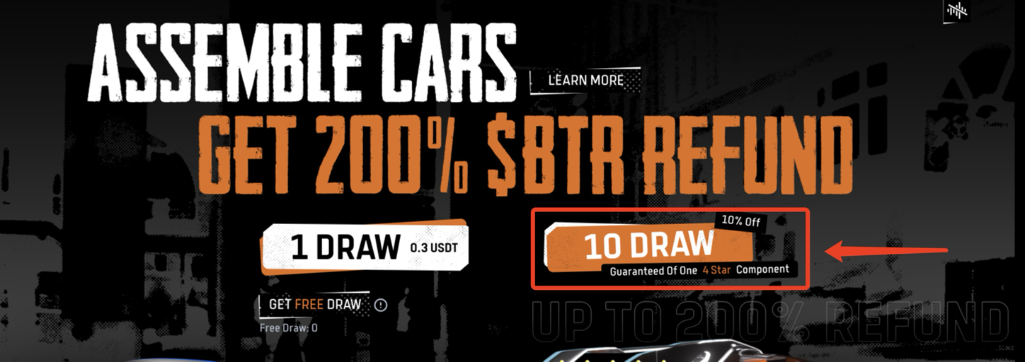 1. 玩家进行单抽或者十连抽需要支付一定费用。基于用户参与的奖池,团队将在本次活动中额外提供 100%等值的$BTR作为奖励。假设活动期间,所有用户参与游戏支付的总费用为X,总空投池的总额将是2X价值的$BTR 空投;