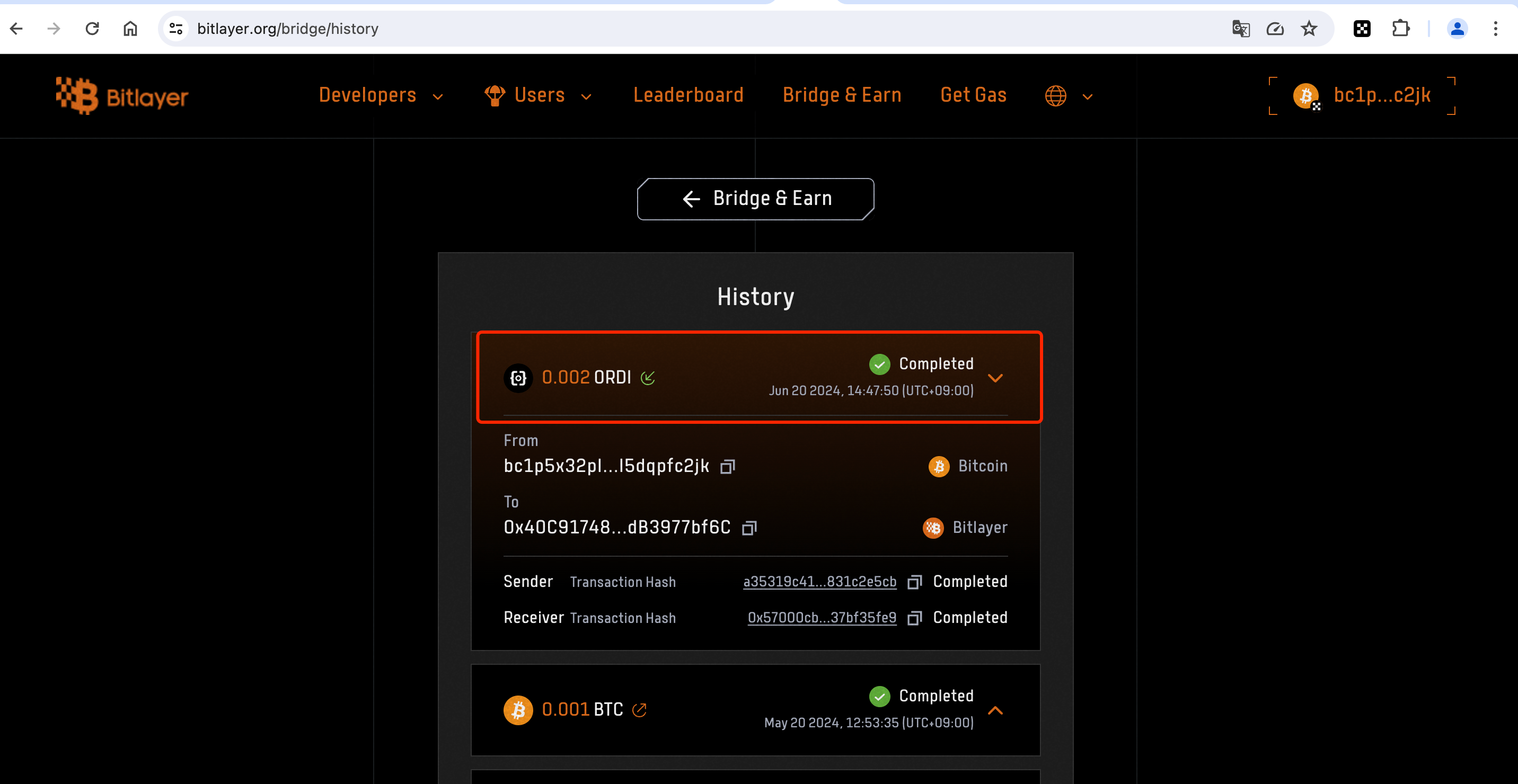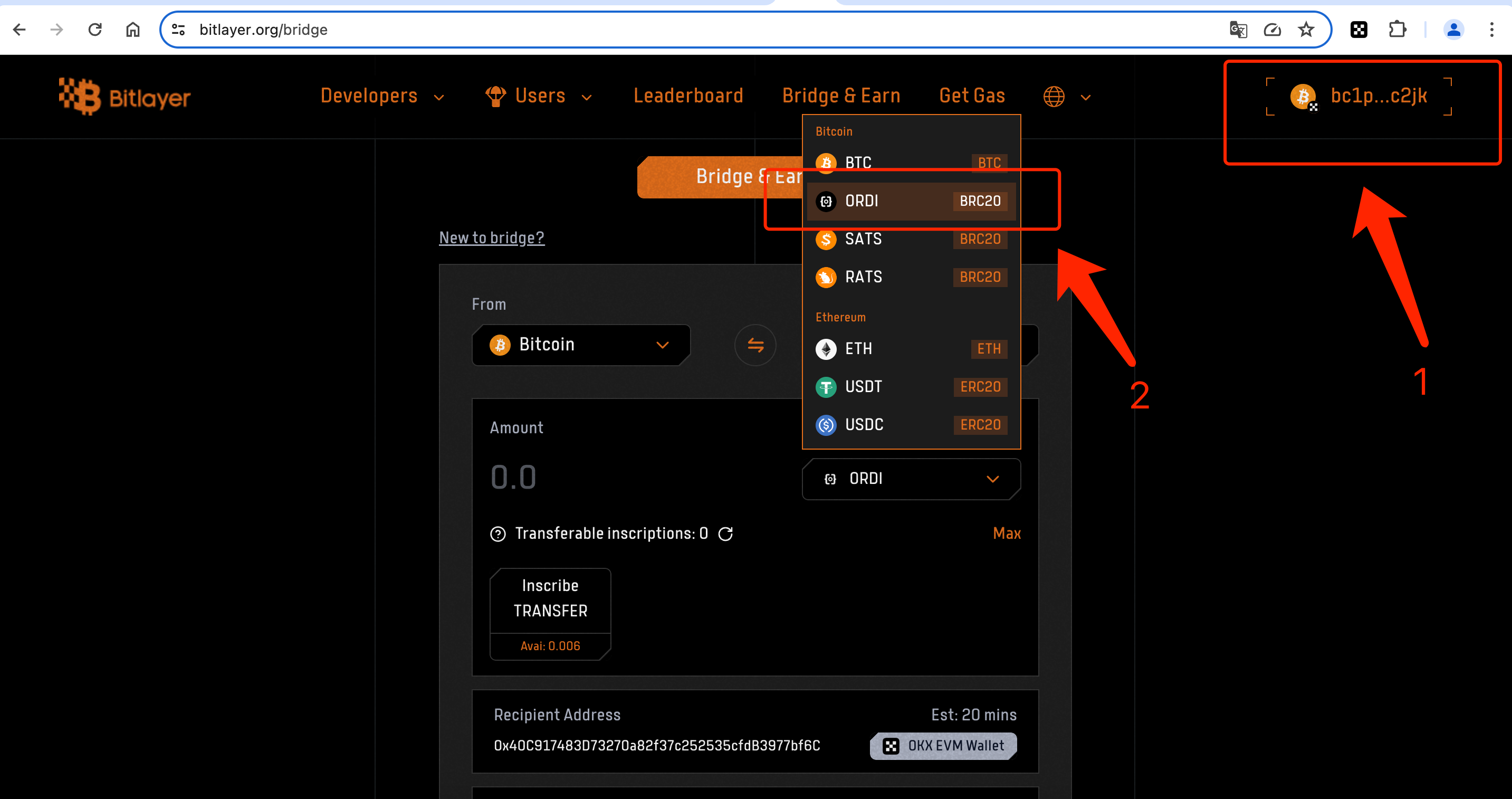 1. 首先打开 Bitlayer 官方桥的页面https://www.bitlayer.org/bridge,链接上您的钱包,然后在资产栏选择您想要跨入的brc20资产