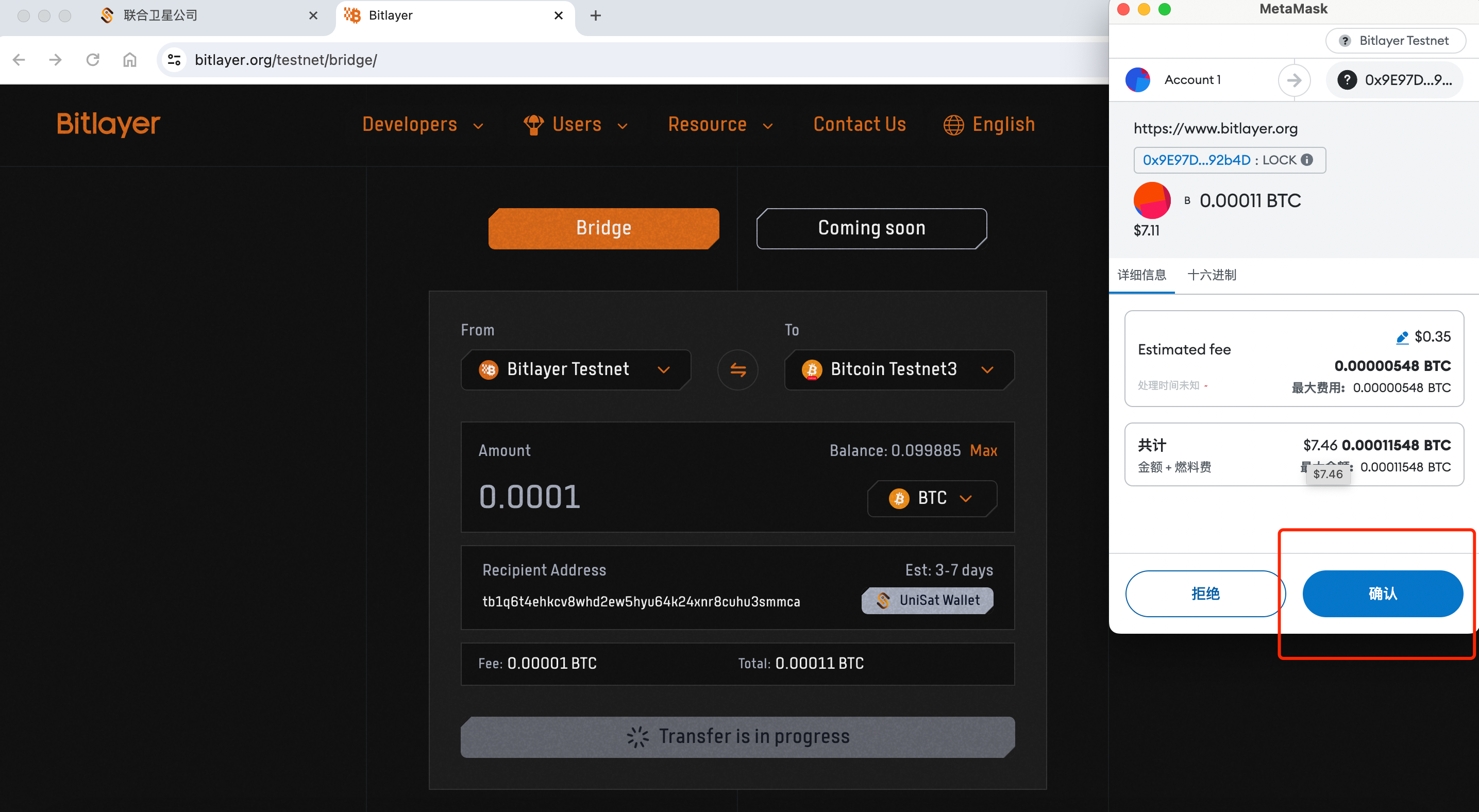 (3) A sufficient amount has been reserved for the cross-chain fee (the cross-chain fee is currently set at 0.00045 BTC). This means the amount of BTC you enter should be less than your total balance.