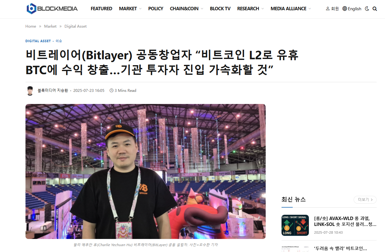 • Chain of Seoul Interview: Charlie Hu shared his crypto journey and Bitlayer’s plans for Korean market integration.